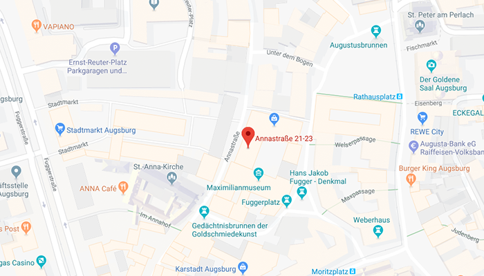 Verkauf REWE Gallauch Am Lehenauweg 2a 86462 Stettenhofen Buchhandlung Thalia Annastrasse 21-23 86150 Augsburg Buchhandlung Lesehexe Hauptstrasse 13 86850 Fischach Bücher-Max Georg-Odemer-Strasse 2a 86356 Neusäß Buchecke Diedorf Hauptstrasse 29 86420 Diedorf Wagner-Markt St.Gallus-Strasse 22 86459 Deubach Welzhofer Mühlenladen Hauptstrasse 47 86459 Gessertshausen Buchhandlung Schmid Fuggerstrasse 14 86830 Schwabmünchen BUCH in STAdtBergEN Bismarckstraße 36, 86391 Stadtbergen Bücher Pustet Augsburg Karolinenstraße 12, 86150 Augsburg